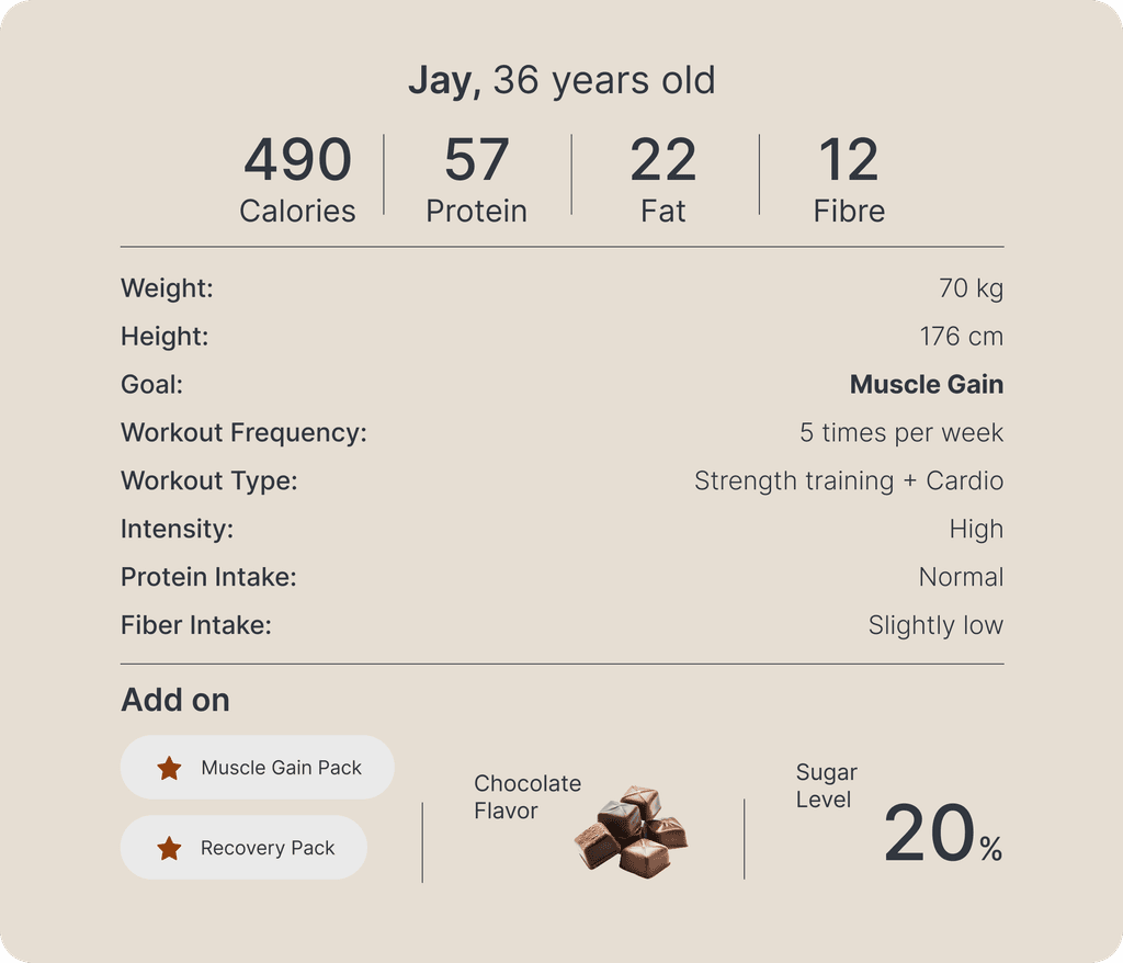 Every decision — from serving size to ingredients — is guided by your goals.